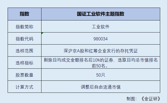 国证工业软件主题指数(980034),选取50只涉及选样范围包括涉及工业研发设计软件、工业生产信息化软件、工业企业业务管理软件、工业自动化软件等领域的公司,反映工业软件相关领域上市证券的整体表现。