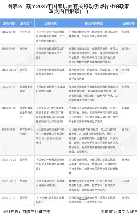 (原标题:重磅!2025年中国移动游戏行业政策汇总及解读(全) 鼓励优质游戏“走出去”)