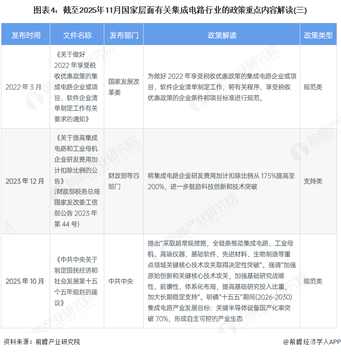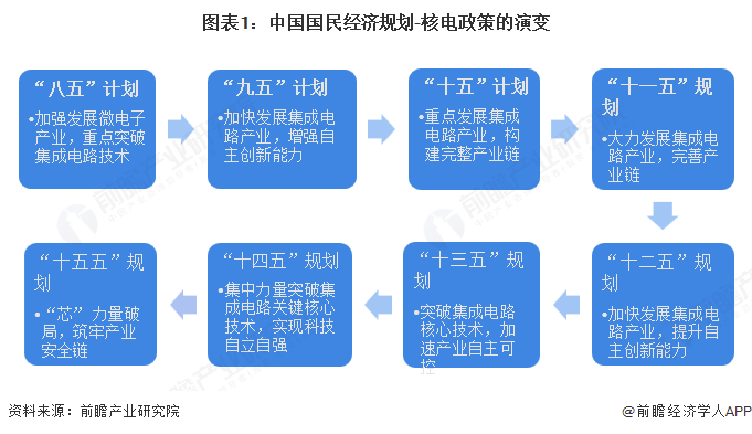 集成电路是我国国民经济转型升级的核心基础、数字经济发展的关键支撑,更是保障产业链供应链安全与国家经济安全的战略性产业。从“八五”到“十五五”,我国对集成电路产业的政策导向从“夯实技术基础”逐步转向“市场体系化”,再到“战略创新升级”,体现了我国从产业“跟跑者”到“并跑者”,最终向引领世界市场转变的战略布局。