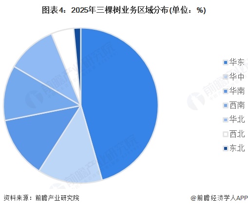 2025年1-6月,公司华东地区实现收入25.88亿元,占总营业额比重达46%;华中地区实现收入7.69亿元,占总营业额比重达14%;华南、西南和华北地区收入占比分别为13%、12%和10%。