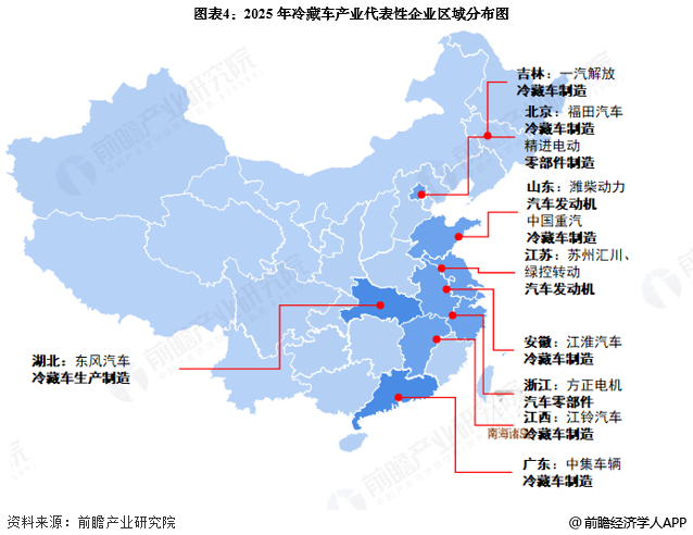 从代表性企业分布情况来看,我国冷藏车代表企业分布在广东、江苏、浙江、山东等东部沿海省份,总体来看企业集中于长三角区域。