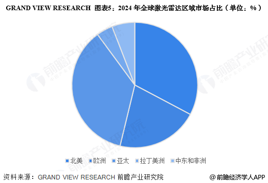 从全球市场区域发展情况来看,2024年亚太地区激光雷达领域市场规模占比最大,为36.14%,其次为北美市场,规模占比为32.77%。
