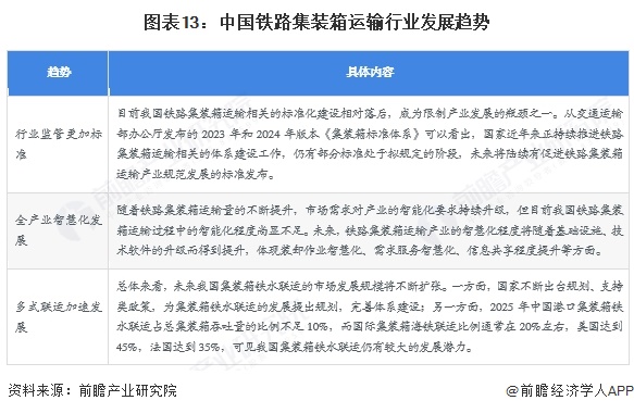 展望未来,中国铁路集装箱运输行业将呈现行业监管更加标准、全产业智慧化发展、多式联运加速发展等趋势。