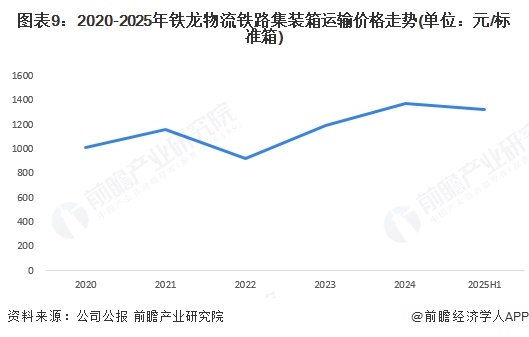 以业内代表性企业铁龙物流的表现情况为例,根据公司铁路集装箱运输业务收入及发送量测算,2020年以来,公司的铁路集装箱运输市场价格波动增长,2025年上半年达到1326.96元/标准箱。