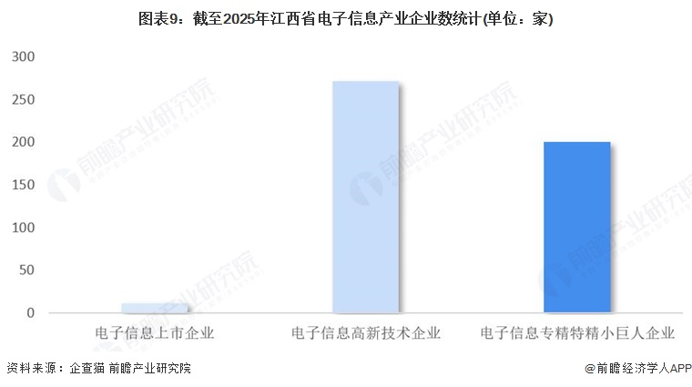 截至2026年1月,江西省已汇聚电子信息上市企业12家,高新技术企业272家,专精特精小巨人企业201家,产业竞争力强劲。