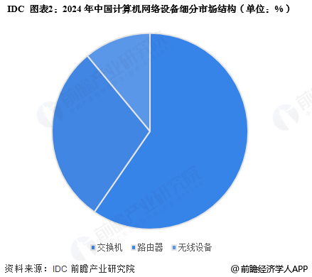 根据IDC披露的数据显示,2024年中国交换机市场规模占比为60%左右,路由器市场占比为29%,而无线设备市场占比为11%左右,交换机仍是最为主要的市场。