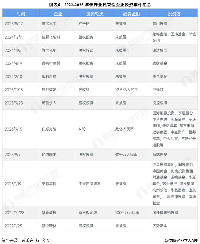 2022-2025年锑行业代表性企业的投资事件汇总如下: