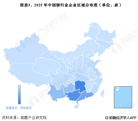 锑产业链区域热力地图:湖南、广西、广东分布最集中