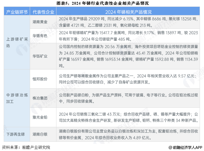 2024年,中国锑行业代表性企业情况汇总如下: