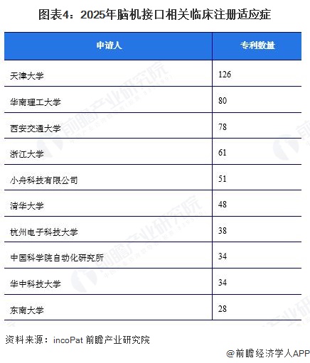 从专利热门申请人来看,截至2025年年底,我国脑机接口行业热门申请人为天津大学,共有126项脑机接口相关专利;其次是华南理工大学和西安交通大学,分别有80项和78项脑机接口相关专利。