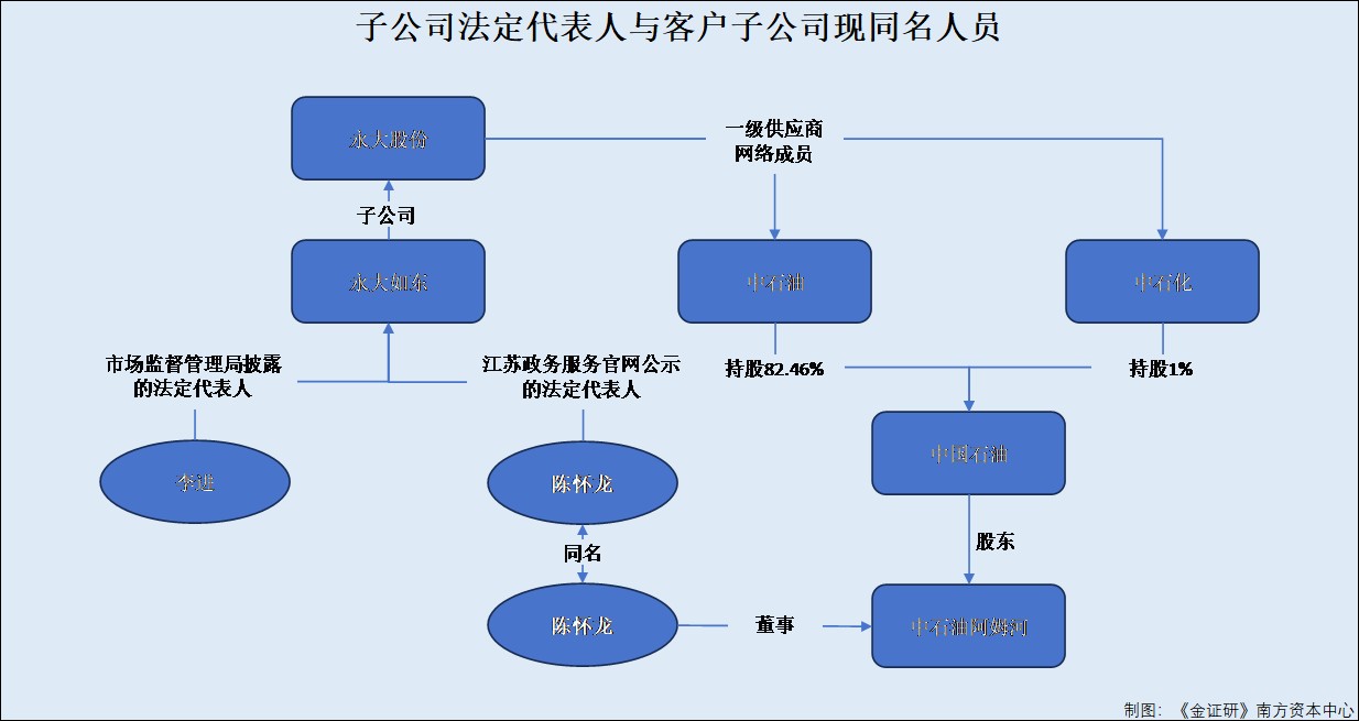 简言之,关于永大股份的子公司永大如东的法定代表人,市场监督管理局披露,其成立起由永大股份的董事钱坤、实控人之一李进先后担任法定代表人。而江苏政府服务网站2025年5月披露,永大如东作为项目单位的法定代表人为陈怀龙。值得一提的是,中石油系永大股份的客户之一,同名的“陈怀龙”担任中石油孙公司“中石油阿姆河”的董事。此外,中石油间接持股的中石油江苏扩建LNG储罐项目所在地,与永大如东募投项目建设地均位于如东县洋口港。