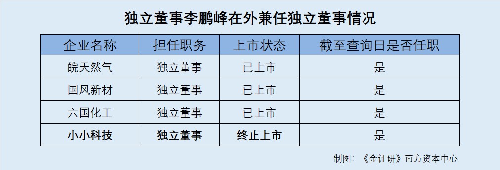 由此可知,李鹏峰在3家已上市企业担任独立董事。而小小科技系拟上市企业,李鹏峰担任小小科技的独立董事。