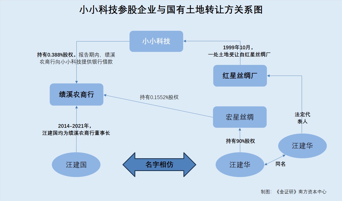 此番上市,小小科技参股绩溪农商行遭关注。小小科技自成立之初与绩溪农商行开展融资业务等合作。而前述提及,1999年10月小小科技自红星丝绸厂受让一处土地,红星丝绸厂存续期间,其法定代表人为汪建华。而同名的“汪建华”控股的企业,也持股该农商行,且“汪建华姓名与绩溪农商行原董事长汪建国相仿。