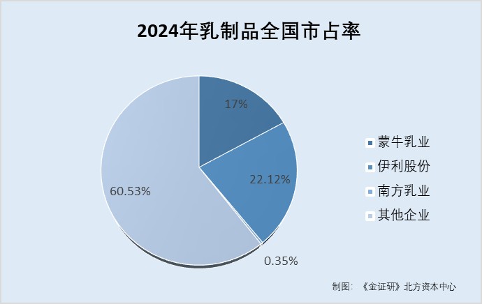据签署于2026年1月4日的公开发行股票并在北交所上市申请文件的第二轮审核问询函的回复(以下简称“签署于2026年1月4日的二轮问询答复”),通过营业收入及国内乳制品市场零售规模数据测算,2024年,南方乳业、伊利股份、蒙牛乳业在国内乳制品行业的市场占有率为0.35%、22.12%、17%。同年,伊利股份及蒙牛乳业市场份额合计为39.12%。