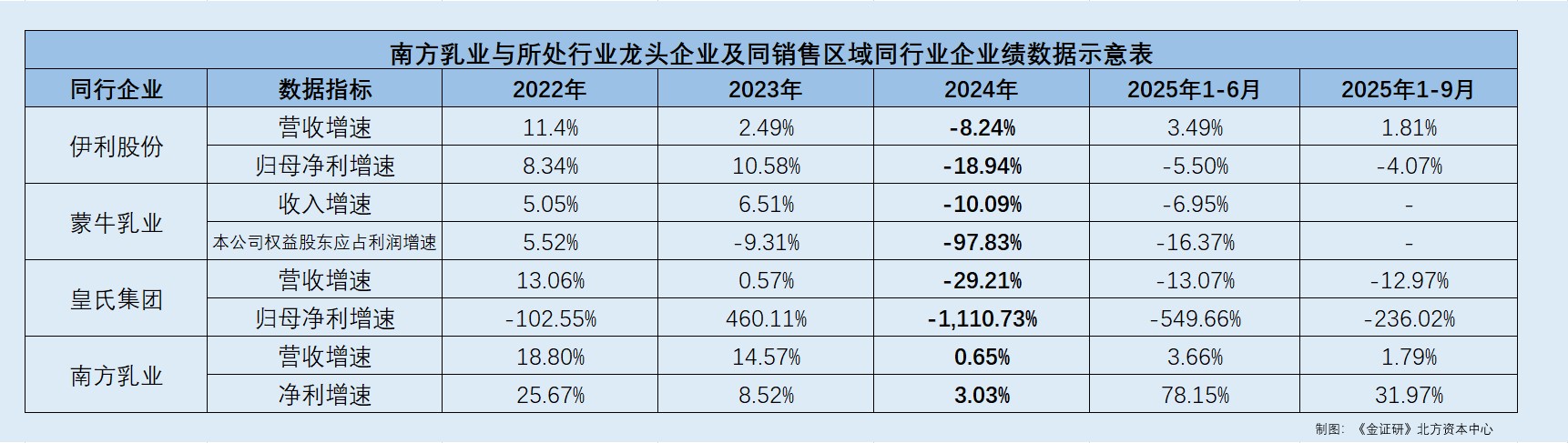 抽丝剥茧方能找到事物真相。值得注意的是,南方乳业申报板块由上交所主板变更为北交所。此外,2022-2024年及2025年1-9月,南方乳业业绩亦呈上升趋势,2025年业绩也呈正增长。而2024年,两家行业龙头业绩均呈现负增长。