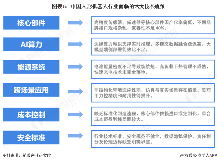5、中国人形机器人行业未来仍面临六大技术瓶颈