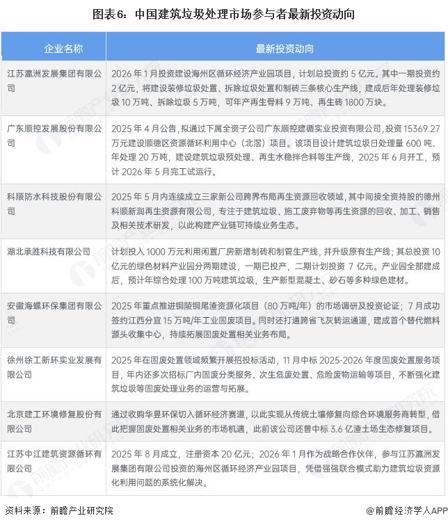 中国建筑垃圾处理市场参与者最新投资动向