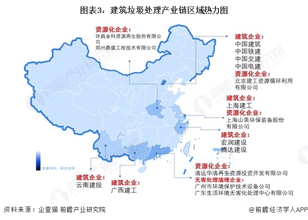 建筑垃圾处理产业链区域热力地图:华东地区分布最集中