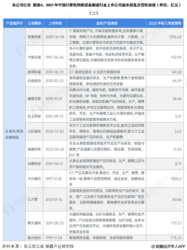 (原标题:【全网最全】2025年计算机网络设备制造行业上市公司全方位对比(附业务布局汇总、业绩对比、业务规划等))