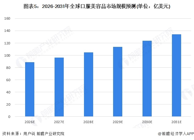 全球口服美容品市场发展前景广阔、增长潜力显著,依托全球消费者“由内养外”的美容健康需求持续升级,叠加美妆与大健康、食品领域跨界融合深化、产品功效研发创新与品类精细化发展等多重利好,行业增长动力充足,预计到2031年全球市场规模将达到134亿美元,市场整体将迎来持续稳健的扩容阶段,长期发展空间可观。
