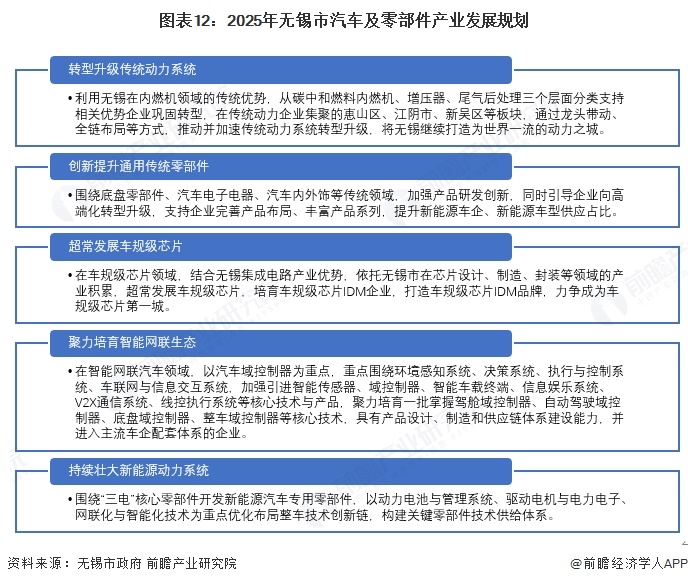 为顺应汽车电动化、智能化、网联化发展趋势,无锡市将聚焦传统动力系统、车规级芯片、智能网联汽车、新能源汽车“三电”核心零部件、传统汽车零部件等5条重点产业链,以“转型升级、创新提升、超常发展、聚力培育、持续壮大”为“五大路径”,打造“两高一链”,即汽车动力产业高地和汽车芯片产业高地,做强智能网联汽车产业链,不断促进汽车及零部件、集成电路、车联网等产业融合发展。