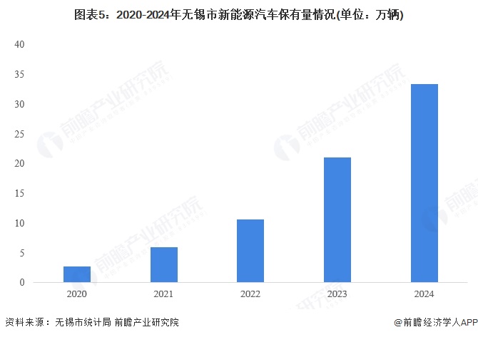 无锡加速推动汽车产业迈向绿色化、智能化,涌现出车联网、新能源汽车等新质生产力,2020-2024年,无锡新能源汽车保有量呈现逐年增长趋势。2024年,无锡市新能源汽车保有量为33.36万辆。