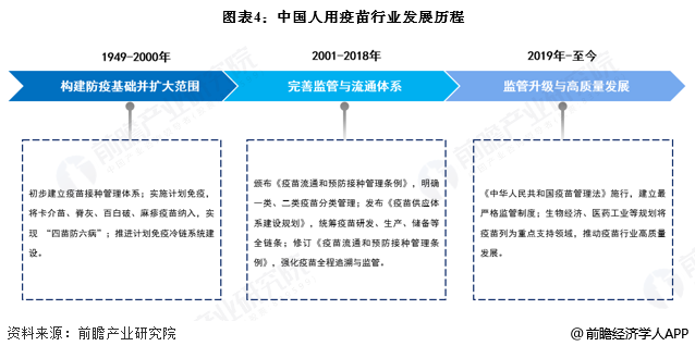 中国极为重视居民身体健康与疾病管控,建国初期便已经开始建立疫苗接种管理体系,1978年实施计划免疫,将卡介苗、脊灰、百白破、麻疹疫苗纳入,实现“四苗防六病;进入21世纪,疫苗管理逐步法治化、规范化,2005年颁布的《疫苗流通和预防接种管理条例》,明确一类、二类疫苗分类管理,2012年发布《疫苗供应体系建设规划》,进一步完善了中国疫苗行业的监管与流通体系;2019年,《中华人民共和国疫苗管理法》施行标志着我国疫苗行业进入监管升级与高质量发展阶段。