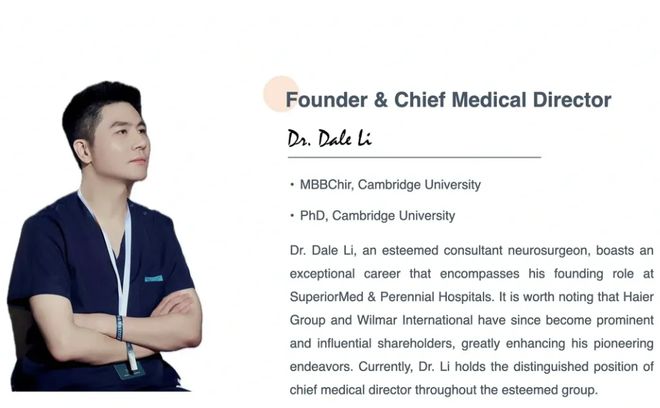 “循上医疗”对外声称创始人是李达乐(Dale Li),也就是成都循上鹏瑞利医院董事长和法定代表人。