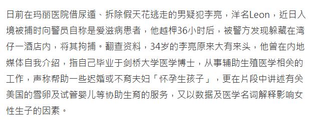 (李亮住院后潜逃,图自港媒)