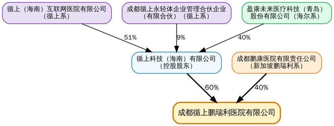 2023年4月,由循上科技(海南)有限公司持股60%、新加坡鹏瑞利集团旗下成都鹏康医院有限责任公司持股40%。