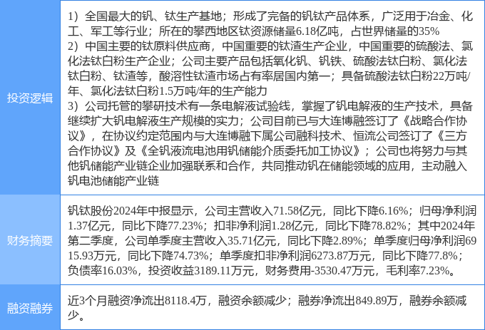 该股为有色 · 钛,有色金属,钒电池概念热股,当日有色 · 钛概念上涨10.23%,有色金属概念上涨10.12%,钒电池概念上涨9.84%。
