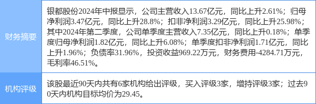 2024年9月3日,开源证券研究员初敏,孟鹏飞,李睿娴发布了对银都股份的研报《公司信息更新报告:产品及费用优化利润端再超预期,派发中期股息》,该研报对银都股份给出“买入”评级。研报中预计2024-2026年归母净利润为6.41/7.35/8.44亿元(原预测2024-2026年为6.05/6.81/7.69亿元),yoy+25.5%/+14.6%/+14.9%,对应EPS1.52/1.75/2.01元,预计新拓展的南美、欧洲等区域有望为后续三年的增长贡献客观增量,薯条机等新品放量在即,当前股价对应PE为15.8/13.8/12.0倍,维持“买入”评级。证券之星数据中心根据近三年发布的研报数据计算,该研报作者对此股的盈利预测准确度为74.19%。