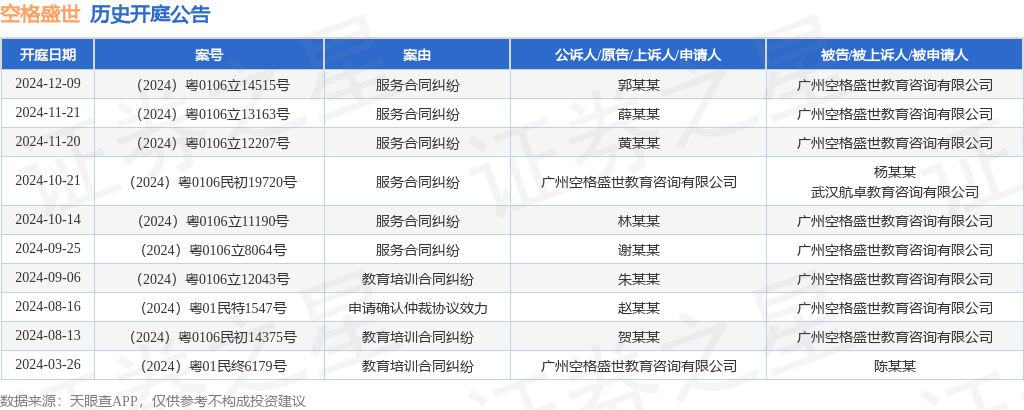 证券之星消息,根据天眼查APP显示,近日公布了一则广州空格盛世教育咨询有限公司作为被告/被上诉人的开庭公告,详细内容如下: