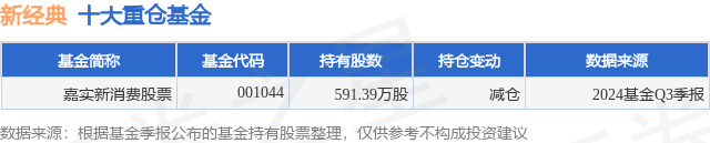 根据2024基金Q3季报公募基金重仓股数据,重仓该股的公募基金共1家,其中持有数量最多的公募基金为嘉实新消费股票。嘉实新消费股票目前规模为23.68亿元,最新净值2.472(11月28日),较上一交易日下跌0.4%,近一年上涨5.64%。该公募基金现任基金经理为谭丽。谭丽在任的基金产品包括:嘉实价值精选股票,管理时间为2017年11月6日至今,期间收益率为98.43%;嘉实价值优势混合A,管理时间为2017年11月14日至今,期间收益率为62.79%;嘉实价值发现三个月定开混合,管理时间为2020年9月21日至今,期间收益率为4.83%。