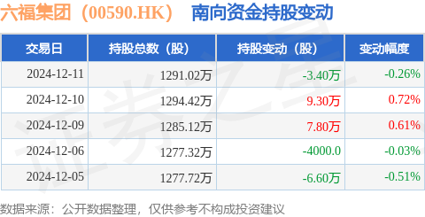 证券之星消息,12月11日南向资金减持3.4万股六福集团(00590.HK)。近5个交易日中,获南向资金增持的有2天,累计净增持6.7万股。近20个交易日中,获南向资金增持的有12天,累计净增持63.96万股。截至目前,南向资金持有六福集团(00590.HK)1291.02万股,占公司已发行普通股的2.19%。