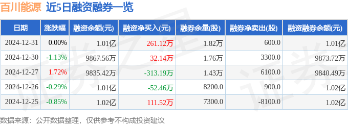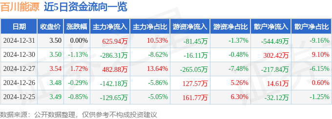 证券之星消息,截至2024年12月31日收盘,百川能源(600681)报收于3.5元,上涨0.0%,换手率1.26%,成交量16.84万手,成交额5941.93万元。