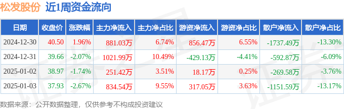 资金流向数据方面,本周松发股份主力资金合计净流入2988.97万元,游资资金合计净流入762.56万元,散户资金合计净流出3751.54万元。本周资金流向一览见下表: