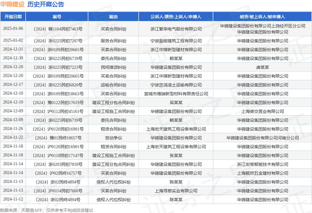 证券之星消息,根据天眼查APP显示,近日公布了一则华锦建设集团股份有限公司作为被告/被上诉人的开庭公告,详细内容如下: