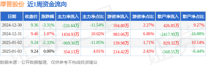 资金流向数据方面,本周厚普股份主力资金合计净流入288.13万元,游资资金合计净流入1442.25万元,散户资金合计净流出1730.38万元。本周资金流向一览见下表: