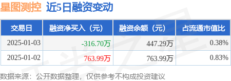 证券之星消息,1月3日,星图测控(920116)融资买入489.42万元,融资偿还806.12万元,融资净卖出316.7万元,融资余额447.29万元。