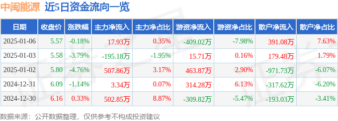1月6日的资金流向数据方面,主力资金净流入17.93万元,占总成交额0.35%,游资资金净流出409.02万元,占总成交额7.98%,散户资金净流入391.08万元,占总成交额7.63%。