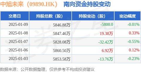 证券之星消息,1月9日南向资金减持5800.0股中旭未来(09890.HK)。近5个交易日中,获南向资金减持的有3天,累计净减持20.46万股。近20个交易日中,获南向资金增持的有13天,累计净增持291.12万股。截至目前,南向资金持有中旭未来(09890.HK)5846.88万股,占公司已发行普通股的10.93%。