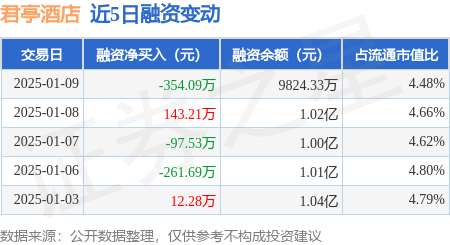 证券之星消息,1月9日,君亭酒店(301073)融资买入234.96万元,融资偿还589.05万元,融资净卖出354.09万元,融资余额9824.33万元。