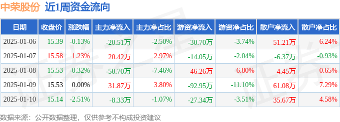 资金流向数据方面,本周中荣股份主力资金合计净流出27.25万元,游资资金合计净流出118.78万元,散户资金合计净流入146.04万元。本周资金流向一览见下表: