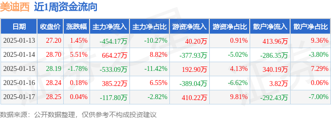 资金流向数据方面,本周美迪西主力资金合计净流出55.57万元,游资资金合计净流出123.63万元,散户资金合计净流入179.2万元。本周资金流向一览见下表: