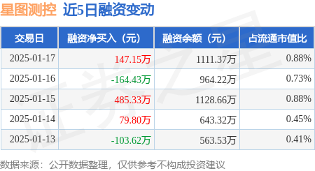证券之星消息,1月17日,星图测控(920116)融资买入526.98万元,融资偿还379.83万元,融资净买入147.15万元,融资余额1111.37万元。