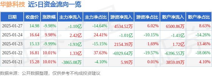 1月27日的资金流向数据方面,主力资金净流出1.1亿元,占总成交额14.64%,游资资金净流入4534.52万元,占总成交额6.02%,散户资金净流入6500.86万元,占总成交额8.63%。