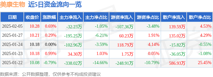 2月5日的资金流向数据方面,主力资金净流出32.23万元,占总成交额1.05%,游资资金净流出107.36万元,占总成交额3.48%,散户资金净流入139.59万元,占总成交额4.53%。