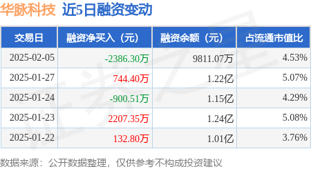 证券之星消息,2月5日,华脉科技(603042)融资买入3395.88万元,融资偿还5782.19万元,融资净卖出2386.3万元,融资余额9811.07万元。