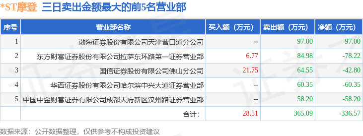 证券之星消息,沪深交易所2025年2月6日公布的交易公开信息显示,*ST摩登(002656)因连续三个交易日内,涨幅偏离值累计达到12%的ST证券、*ST证券和未完成股改证券登上龙虎榜。此次是近5个交易日内第1次上榜。
